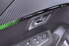 Panele przednich drzwi z dekoracją Carbon i listwą w błyszczącej czerni z tampodrukiem Calcite
